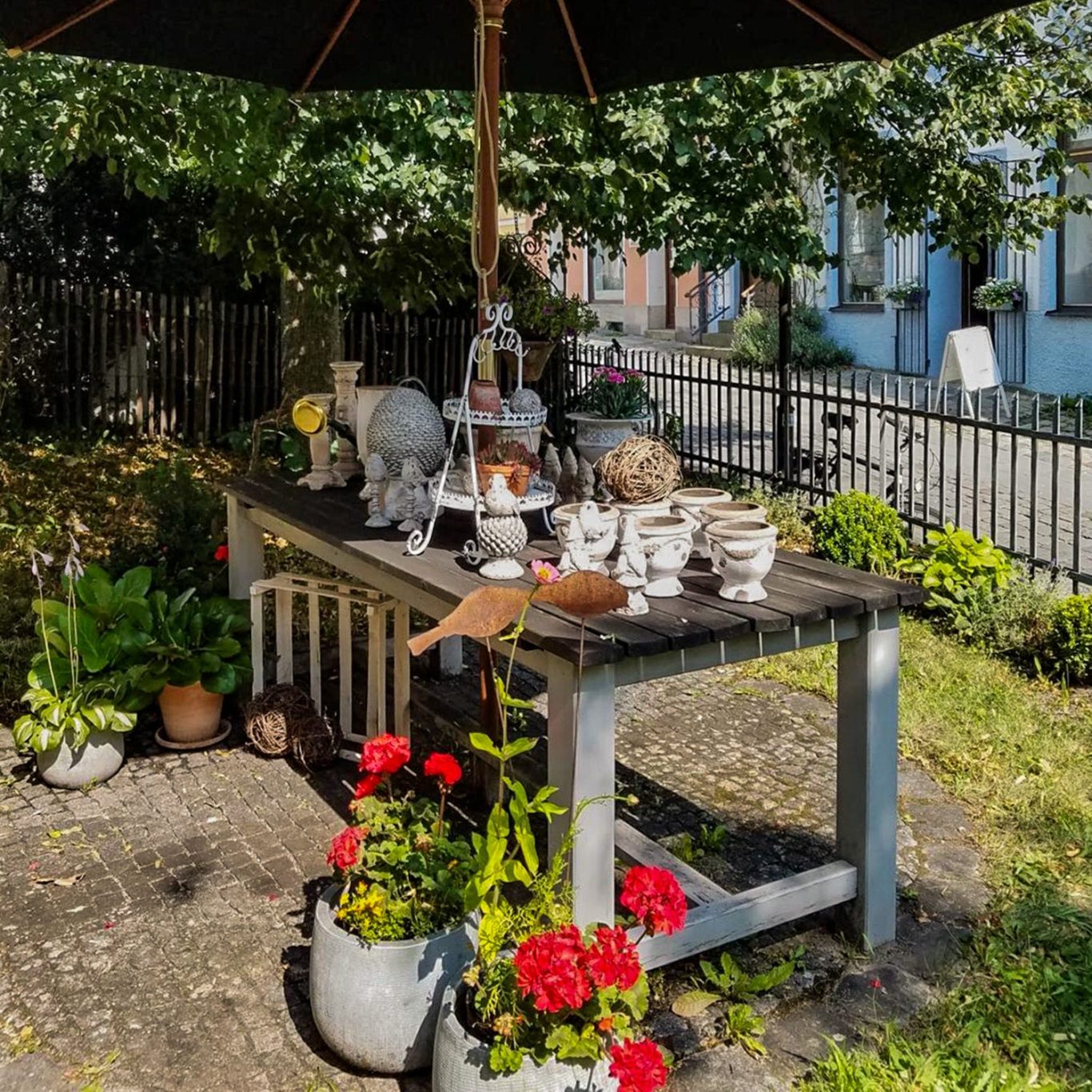 Mein Gärtchen neben dem Laden bietet Ihnen Inspirationen für die Dekoration Ihres Gartens, aber auch einen gemütlichen Platz für einen Kaffee an einem schattigen Plätzchen - und das mitten in der hübschen Altstadt von Freising.